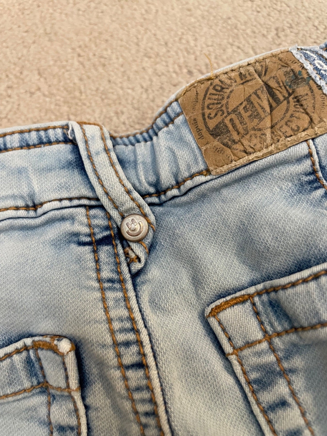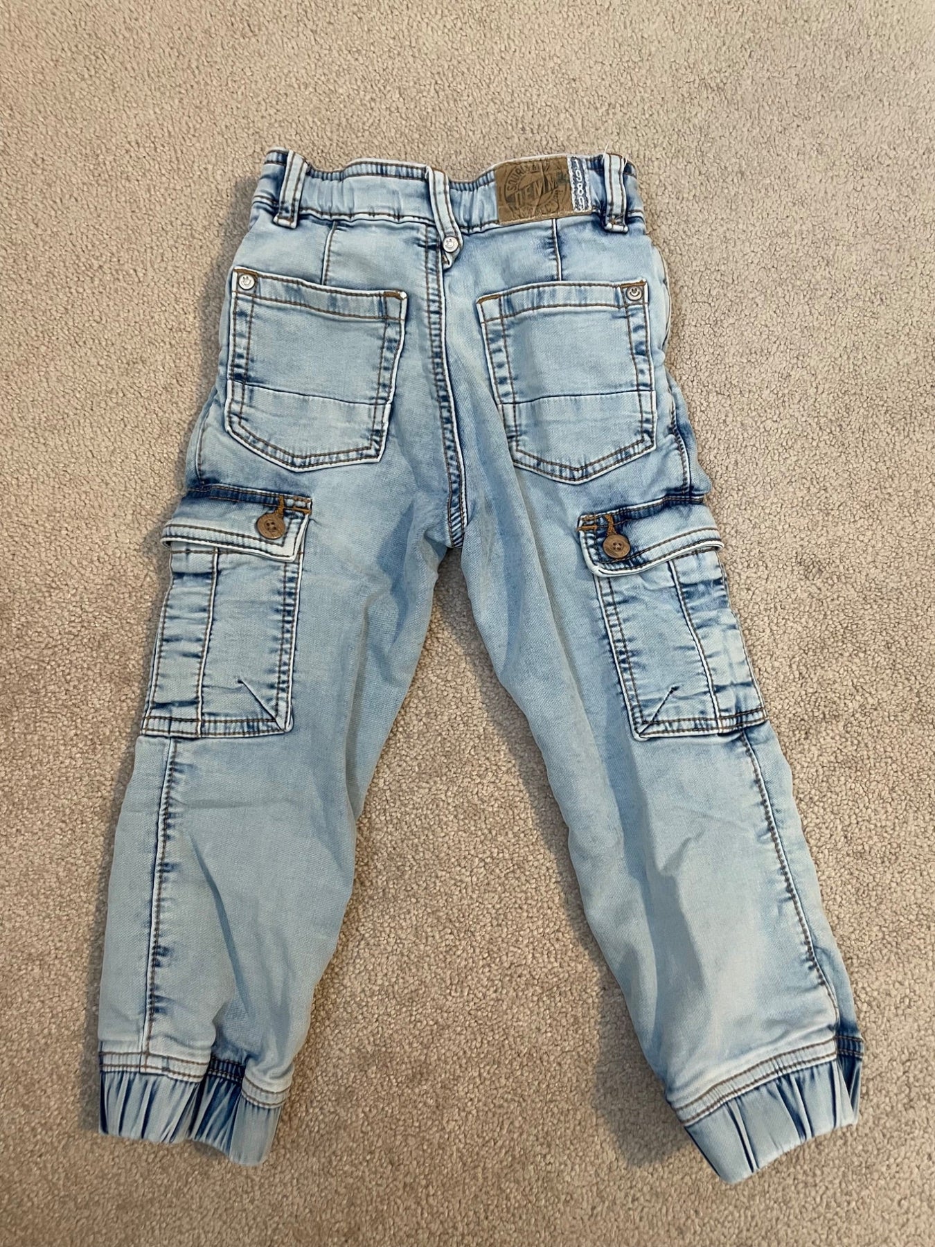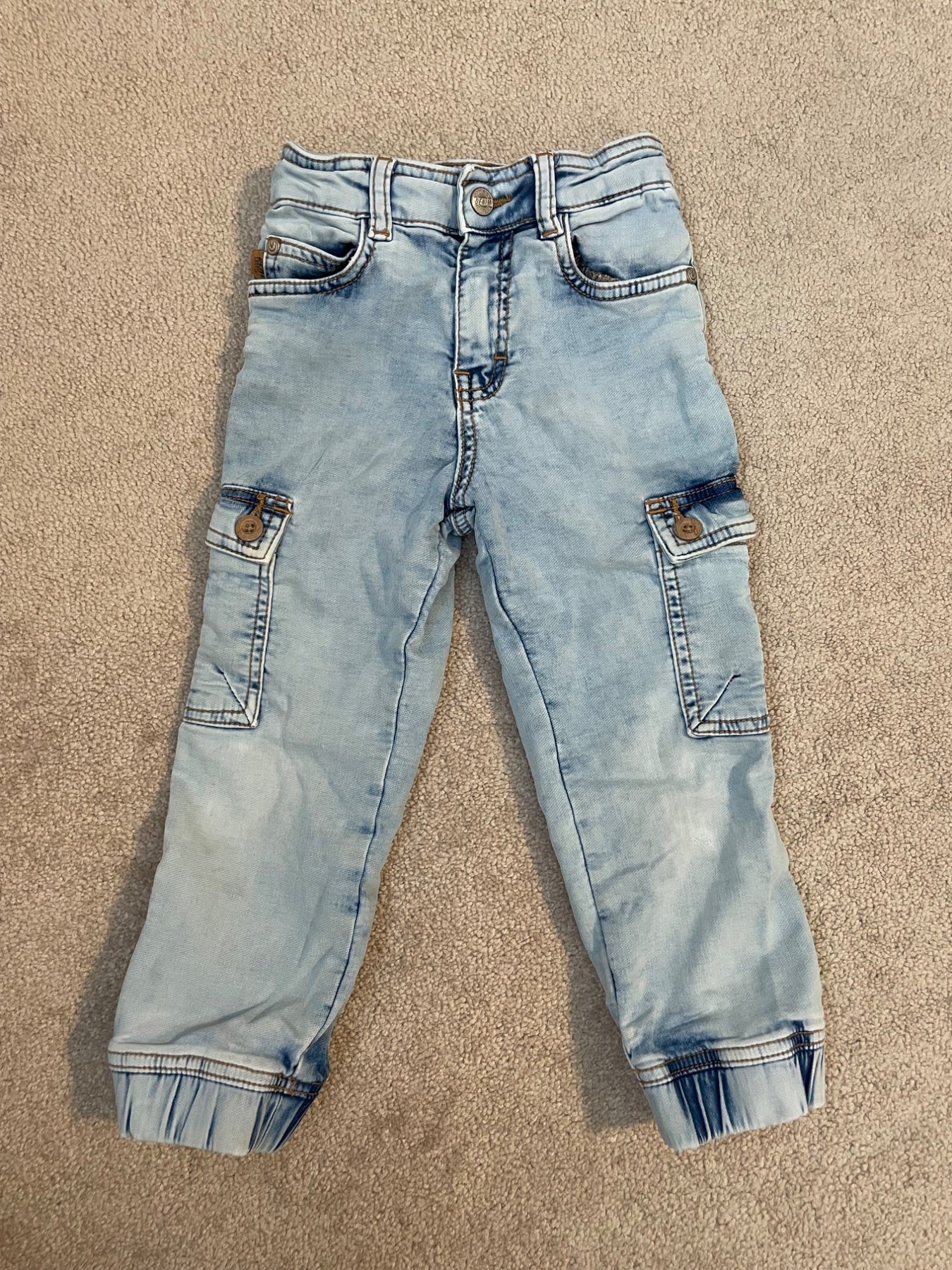 Regular-fit pants with cargo pockets in light blue stretch denim, size 4yr