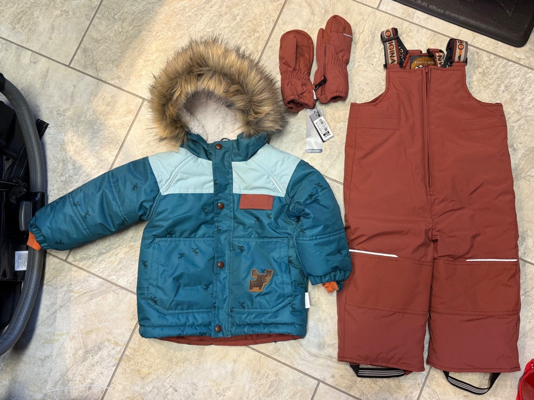 Habit de neige 18-24 porté 1 jour. Servi comme second habit à la maison et utilisé une fois. Mitaine neuve avec étiquettes, grandeur o/s bébé