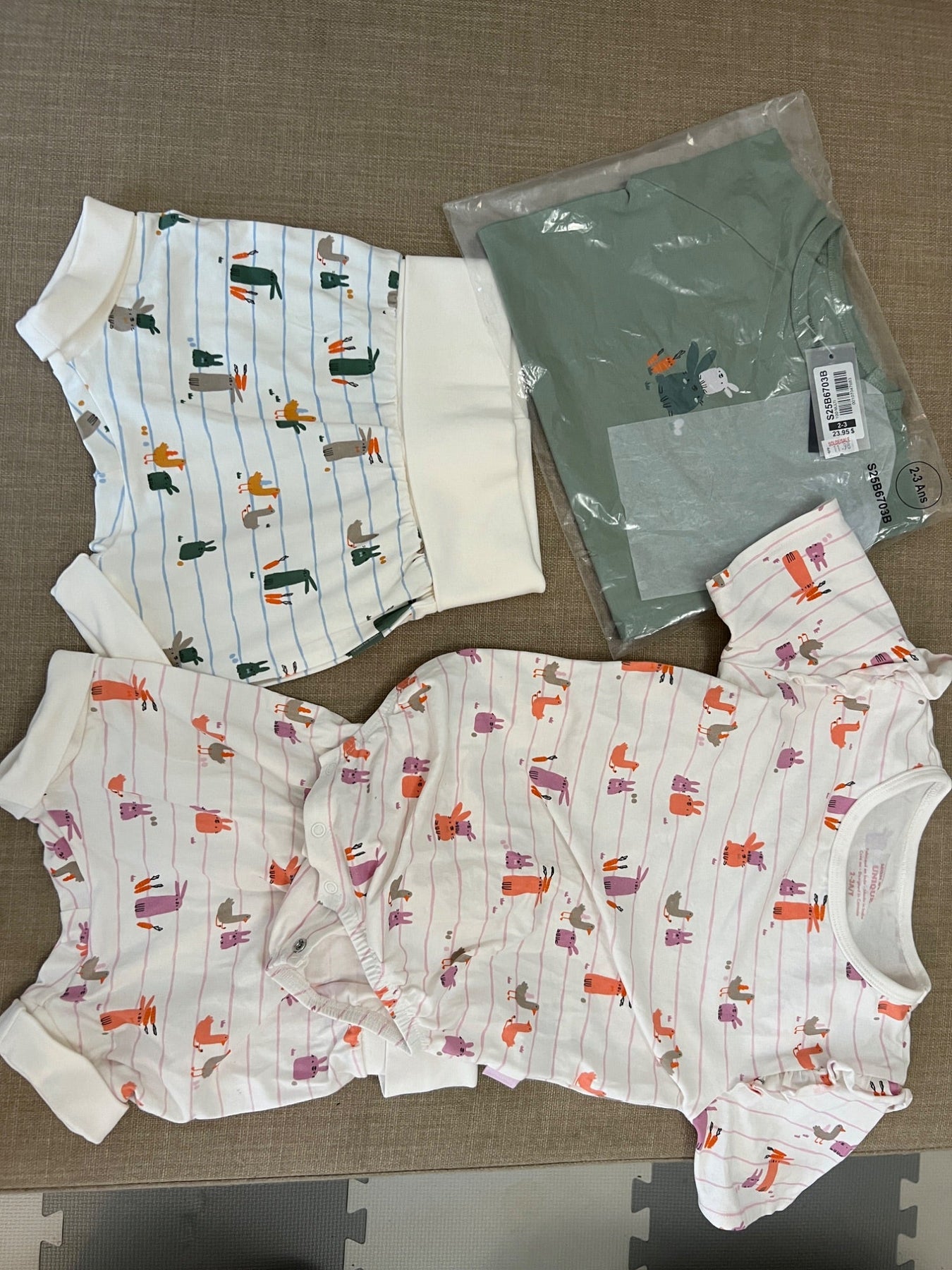 Pyjama 2-3 ans Lapin, Canard, Carotte