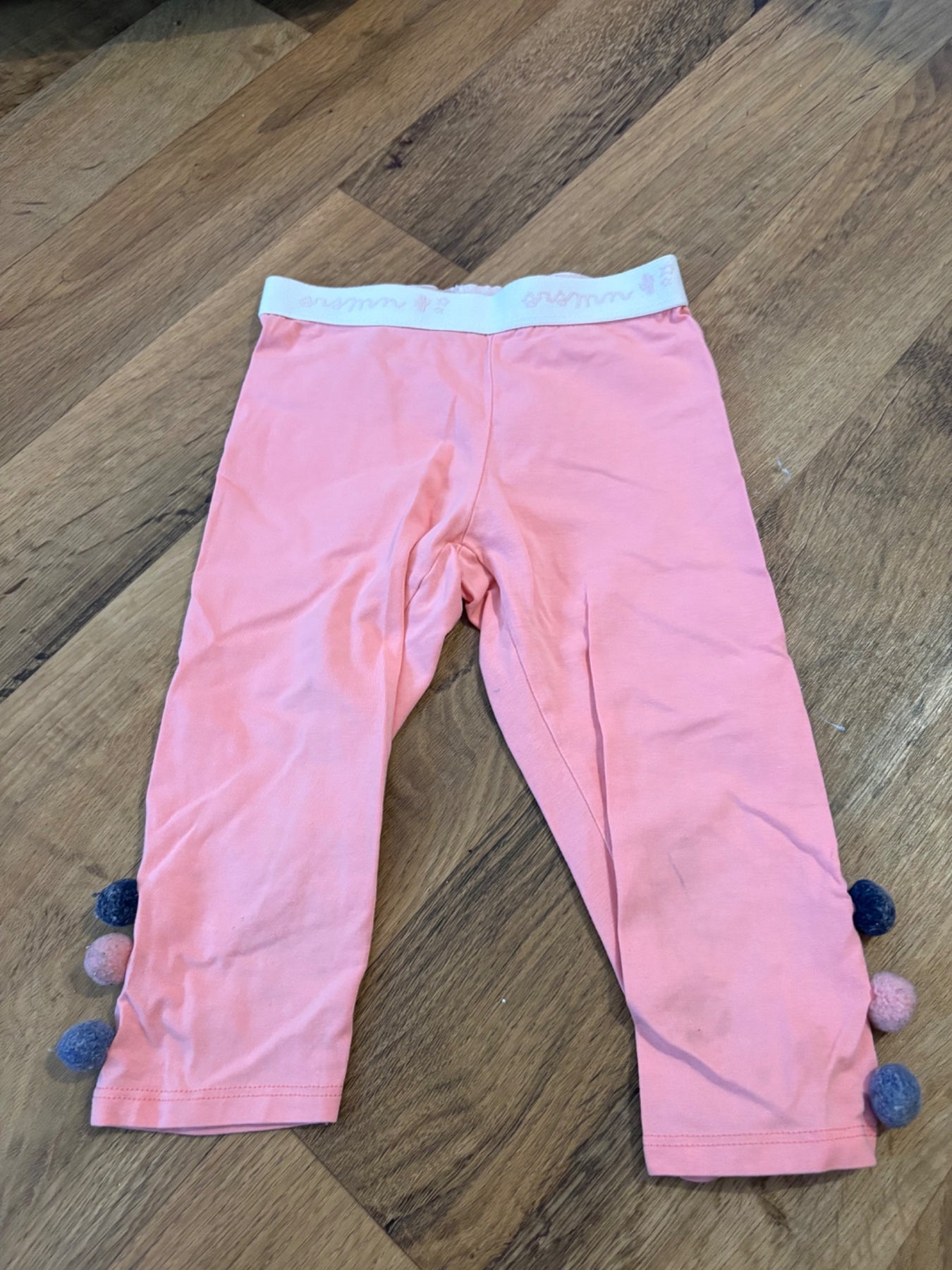 Beau legging de grandeur 4 ans avec des petits pompons sur le côté. Vraiment cute !