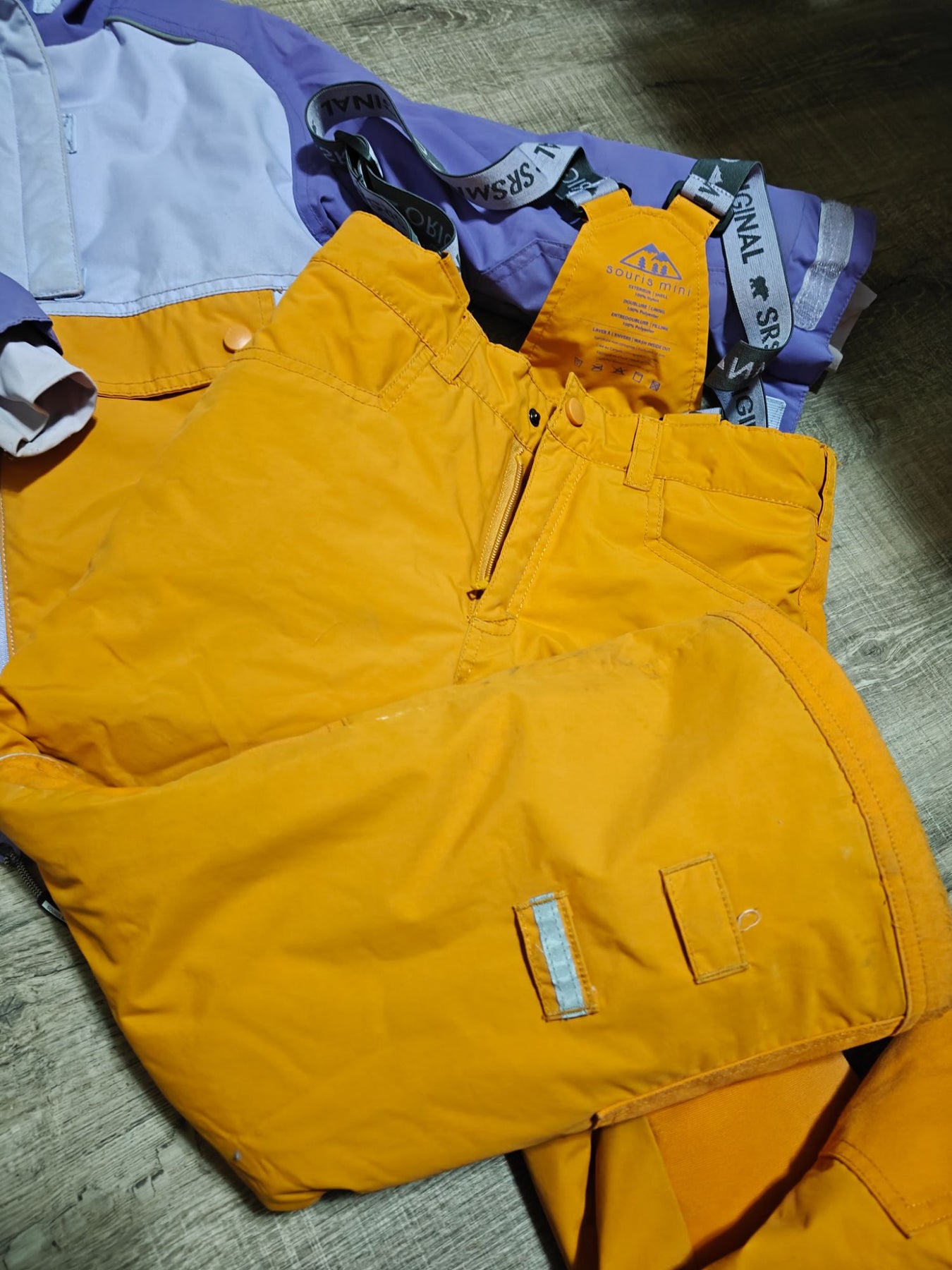 Purchased and worn with one child Smoke free home We have a cat and a dog Great condition, this suit has some signs of wear Orange and purple in colour