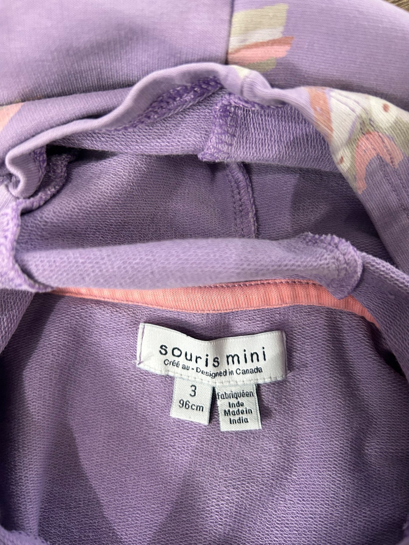 Tunique mauve avec capuchon et motif Arc-en-ciel 3 Ans