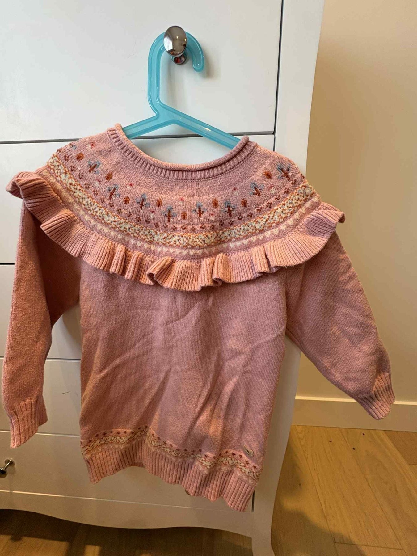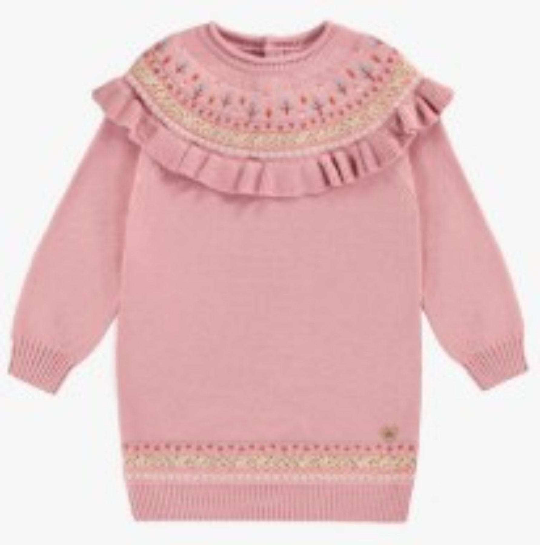 Robe en tricot rose à manches longues avec motif jacquard fleuri