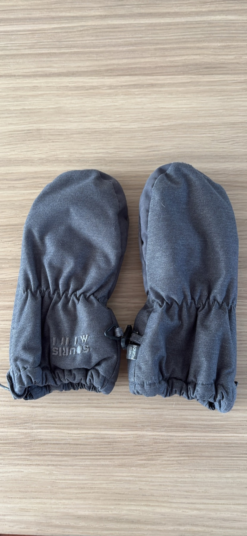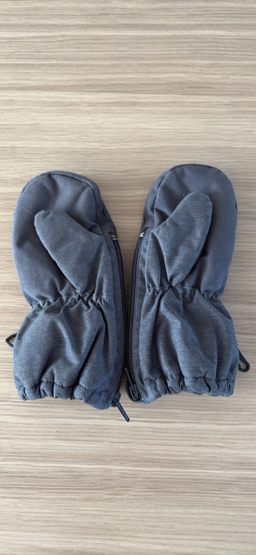 Mitaines grises 18/24 mois avec zip sur le côté pour faciliter l’habillage.