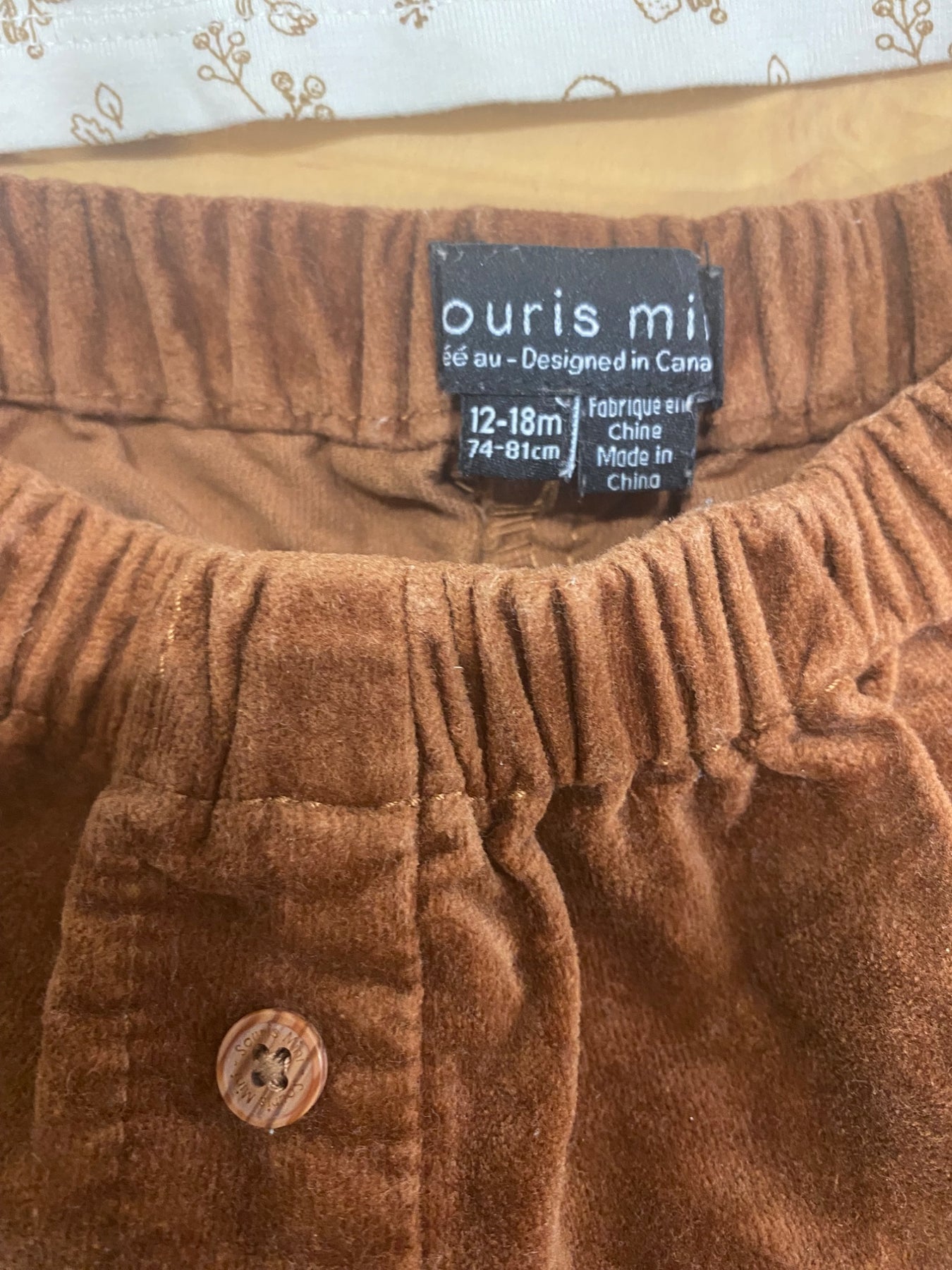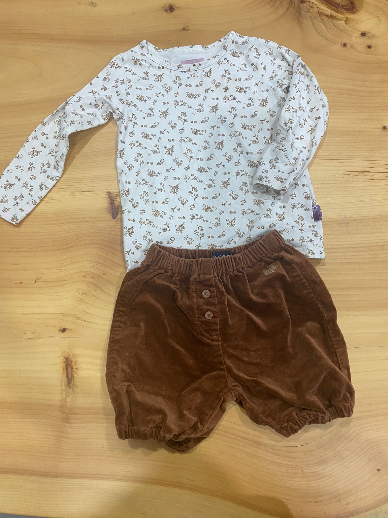 Ensemble short en velours (super avec un collant) et chandail, grandeur 18-24m