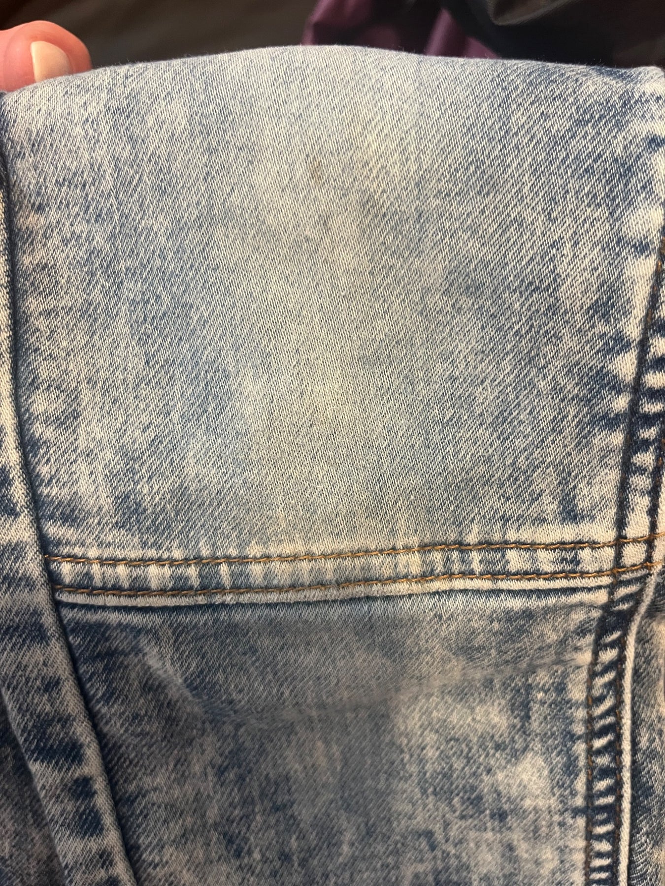 bon état. Pas de sécheuse, pas de trou et mini tache sur le genou. Voir 3e photo. Environnement sans animaux et sans fumée.